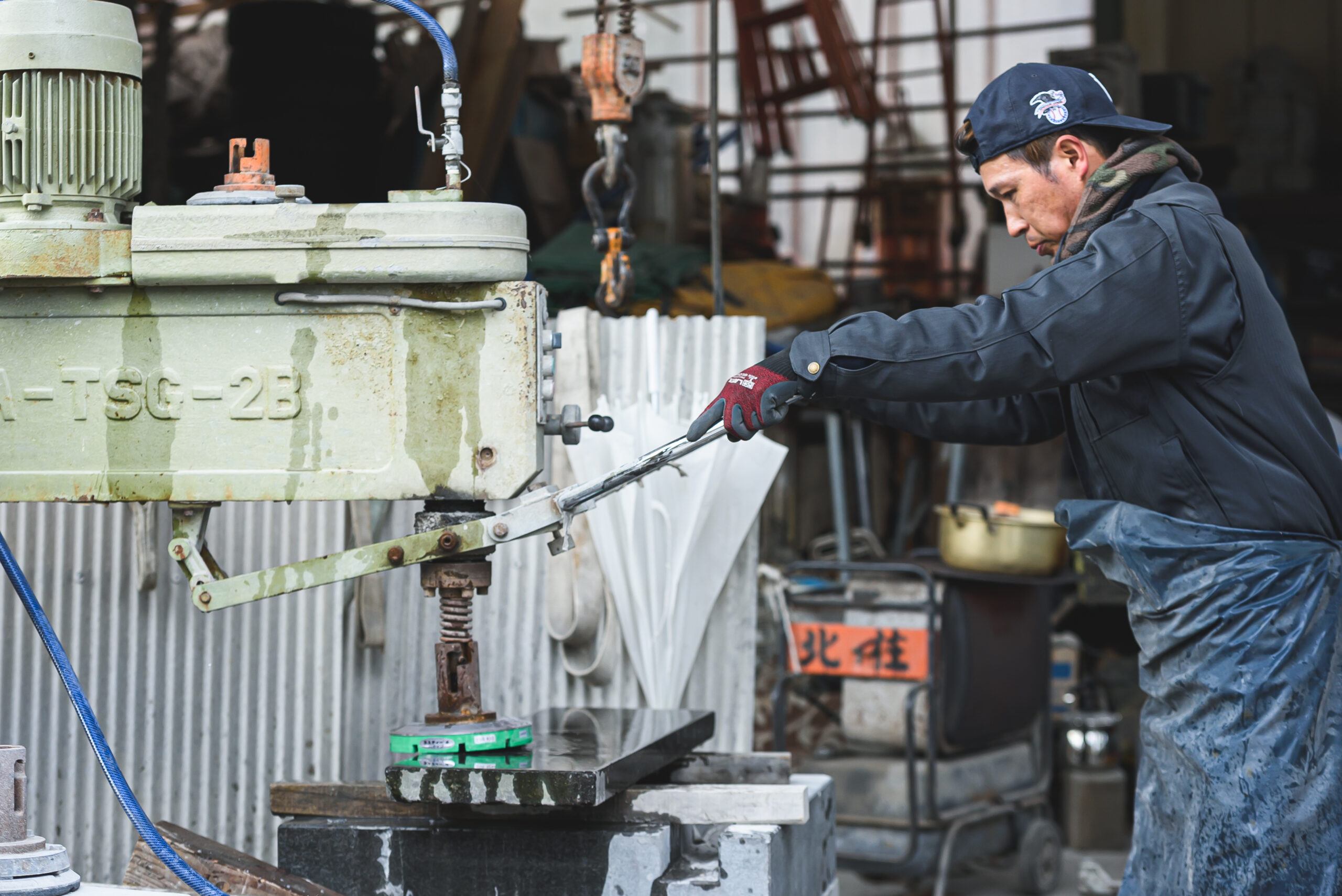 平成二年の設立より、長く安心して使い続けられる「石」の姿を追求してきました。 墓石には芯棒を通し、揺れに強い専用接着剤を使用するなど、目に見えない土台から強固に仕上げます。