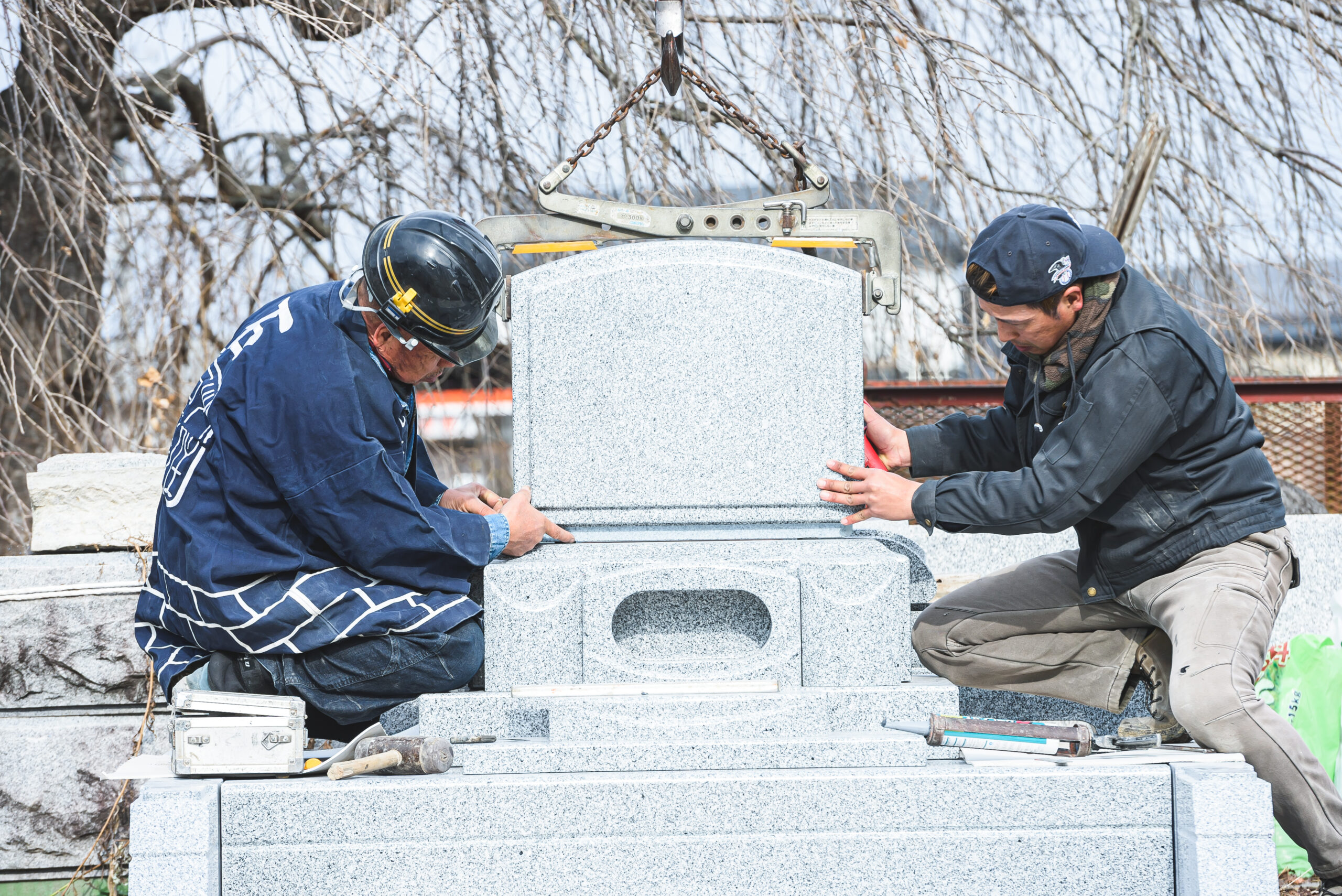 まずは墓地を拝見し、周囲の環境や規則に調和する最適なサイズ・形状をご提案いたします。 多彩なサンプルをご用意しており、細かなご要望を反映したデザインも可能です。 お話しを伺いながら一緒に作り上げたいと考えておりますので、まずはどうぞお気軽にご相談ください。
